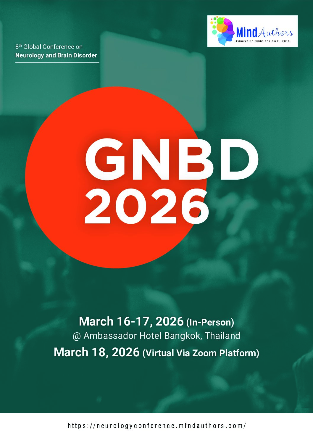 9th Global Conferenc on Neurology and Brain Disorder which is scheduled to be held on March 04 & 05, 2027 (In-Person in Singapore) & March 06, 2027 (Virtual Via Zoom Platform). GNBD 2027 will create a global platform for researchers, scientists, academicians, policymakers, and industry experts to share experiences, discuss research findings, and acquire the desired knowledge in the subject worldwide with many networking opportunities. GNBD 2027 International Conference is a federated organization dedicated to bringing together a significant number of diverse scholarly events for presentation within the conference program. Events will run over a while during the conference depending on the number and length of the presentations. Its high quality provides exceptional value for students, academics, and industry researchers. Global conference on Neurology and Brain Disorder aims to bring together leading academic scientists, researchers, and research scholars to exchange and share their experiences and research results on all aspects of Neurology and Brain Disorder. It also provides a premier interdisciplinary platform for researchers, practitioners, and educators to present and discuss the most recent innovations, trends, and concerns as well as practical challenges encountered and solutions adopted in the fields of Neurology and Brain Disorder.